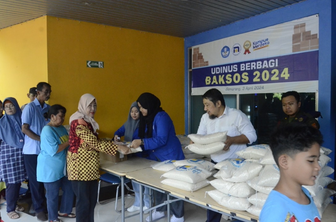 Kegiatan membagikan beras pada warga sekitar kampus merupakan kegiatan rutin yang dilakukan Udinus setiap bulan Ramadan. Dalam proses pembagian beras tersebut tidak hanya di sekitar lingkungan kampus Udinus di Pendrikan Kidul, namun dibagikan di kawasan jalan Durian, Papandayan, Srondol, dan Ngaliyan.