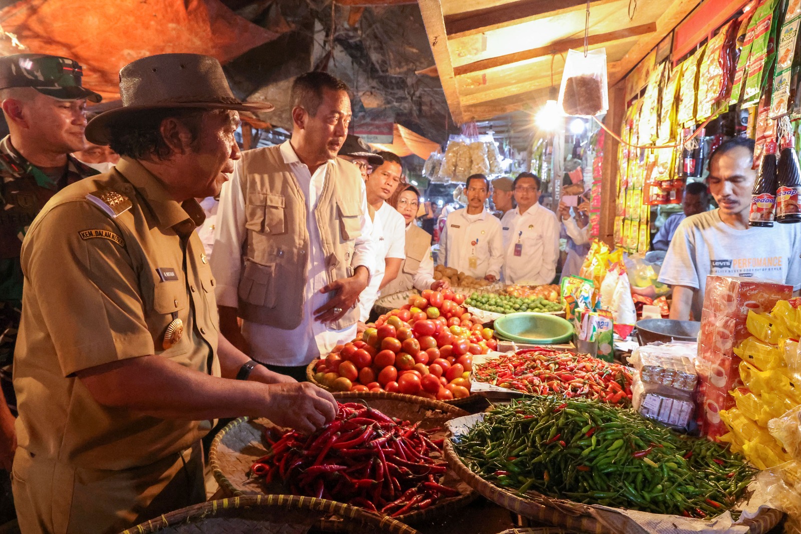 SERANG, Warga Berita – Pj Gubernur Banten Al Muktabar melakukan inspeksi mendadak (Sidak) terkait ketersediaan dan keterjangkauan harga bahan kebutuhan pokok terutama cabai di Pasar Induk Rau (PIR), Kota Serang, Rabu, 20 Desember 2023. Sidak itu salah satunya dilakukan untuk mengecek ketersediaan dan harga cabai yang saat ini sedang tinggi.