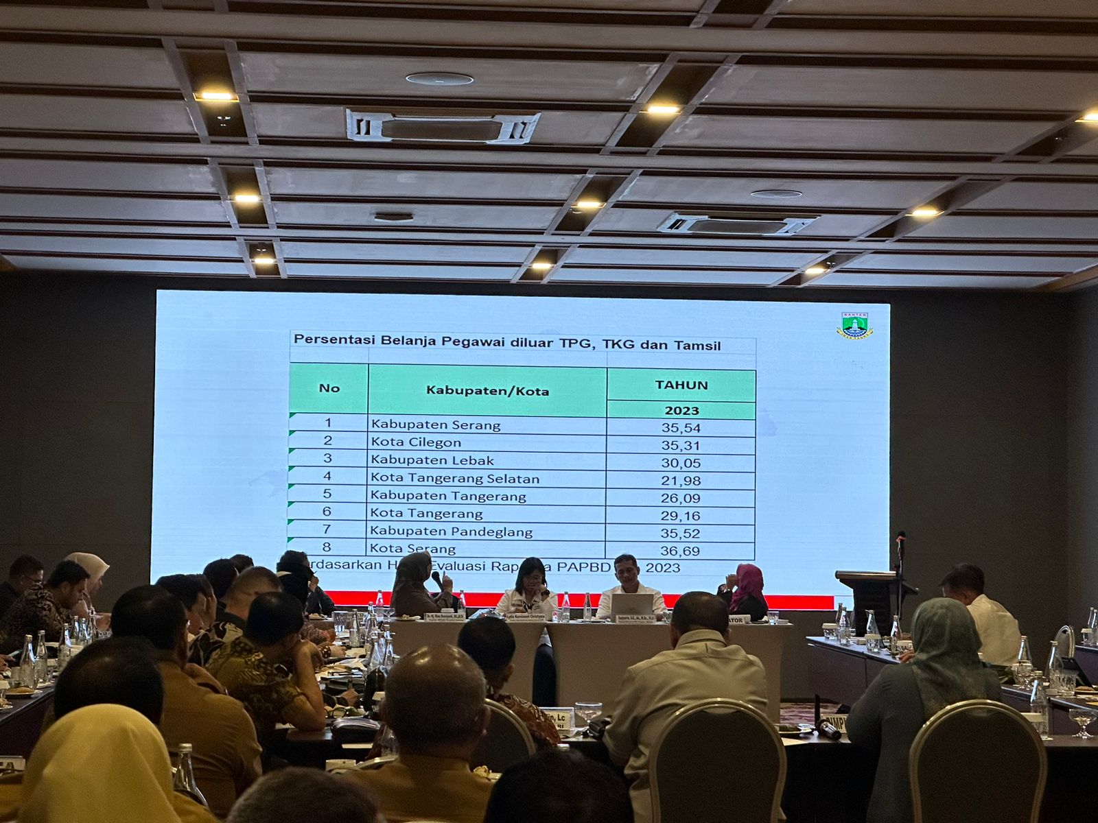 Ia membeberkan, persentase belanja pegawai yang di atas 30 persen yakni Kabupaten Serang 35,54 persen; Kota Cilegon 35,31 persen; Kabupaten Lebak 30,05 persen; Kabupaten Pandeglang 35,52 persen; dan Kota Serang 36,69. Sedangkan yang di bawah 30 persen yakni Kota Tangerang Selatan 21,98 persen; Kabupaten Tangerang 26,09 persen; dan Kota Tangerang 29,16 persen.