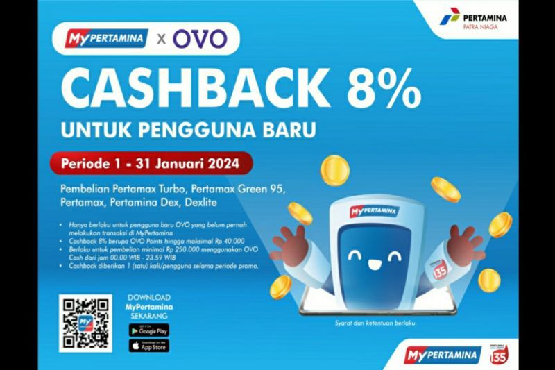 “Untuk mendapatkan cashback saldo MyPertamina OVO points sebesar 8% atau sebesar maksimal Rp.40.000, konsumen hanya perlu melakukan transaksi minimal Rp 250.000 dan cashback didapatkan sebanyak 1 (satu) kali per selama periode promo berlangsung”, ujarnya.