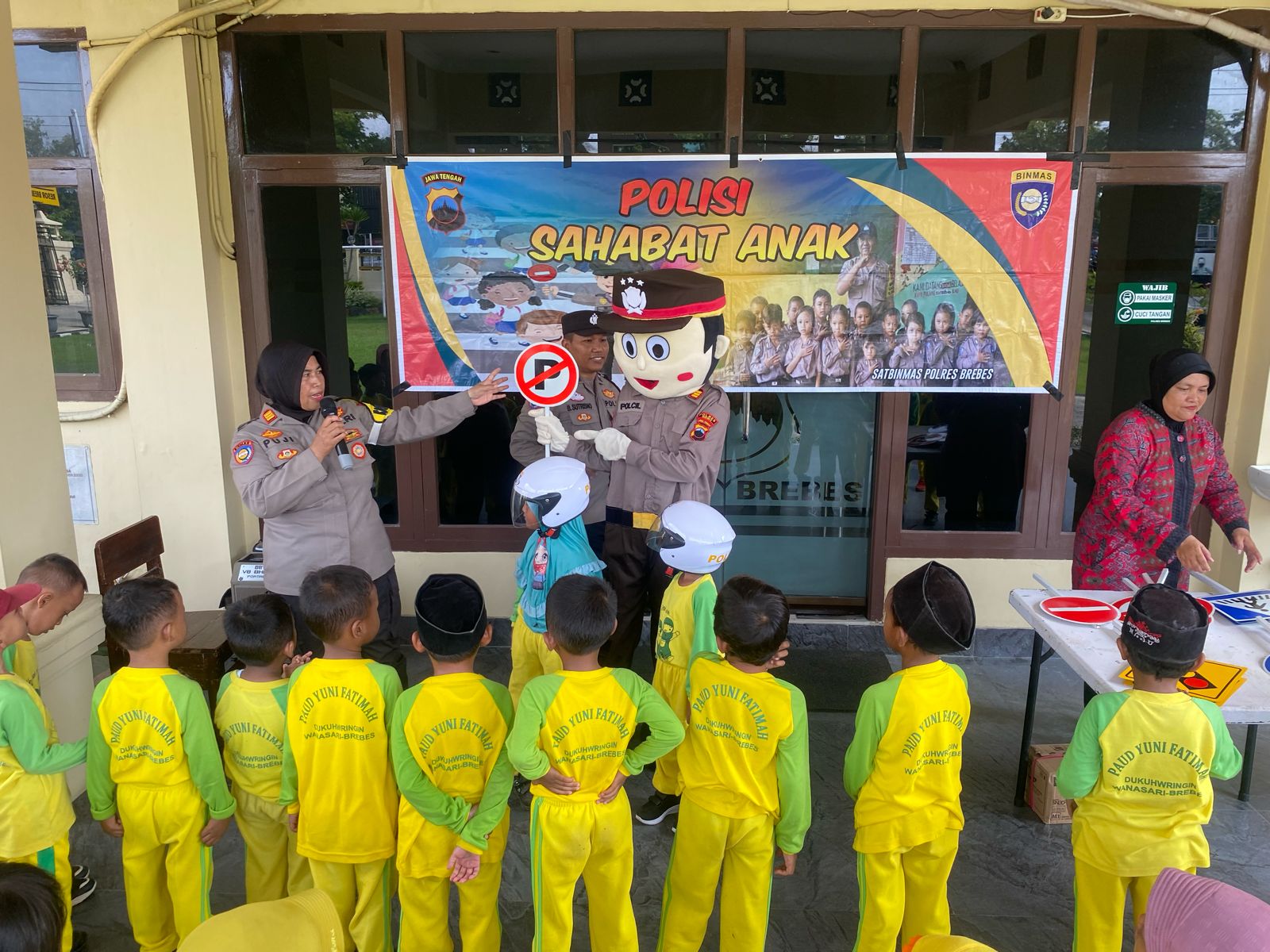 Brebes – Puluhan anak usia dini dari TK atau Kelopok bermain Yuni Fatimah Desa Dukuhwringin Kecamatan Wanasari Brebes melaksanakan kunjungan ke Polres Brebes dalam rangka Studi wisata dan program Polisi Sahabat Anak, Kamis (7/3/2024).