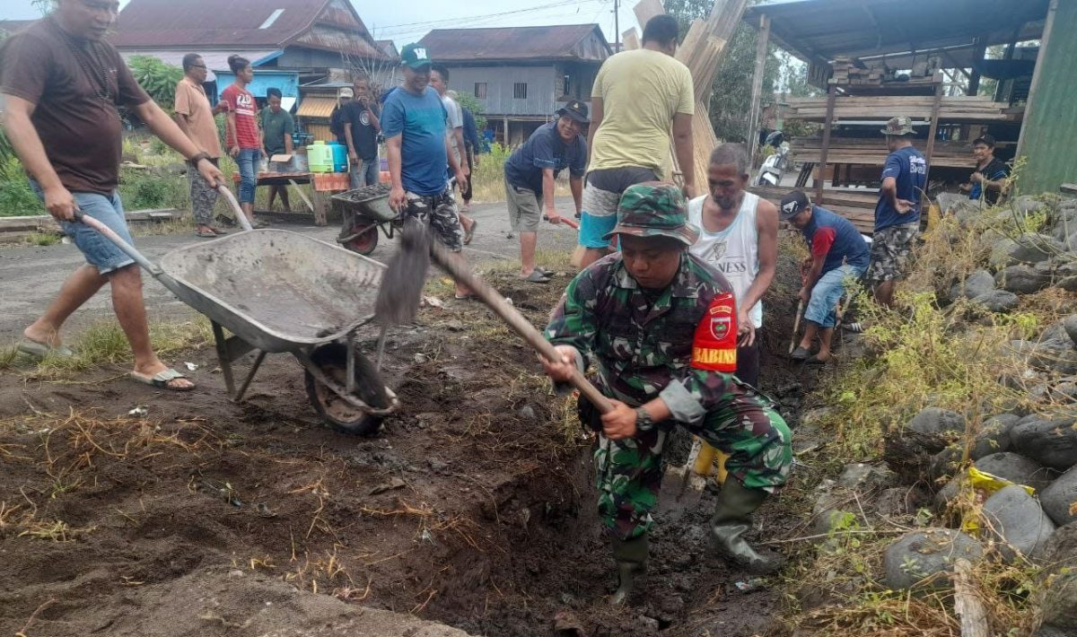 Bersama-sama, mereka melakukan kerja bakti membersihkan lingkungan sekitar pemukiman warga dengan fokus pada pembersihan selokan, Senin (12/2/2024).