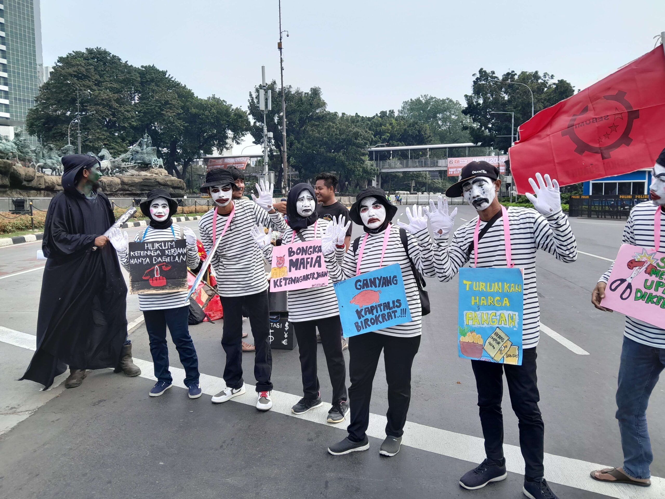 Warga Berita – Aksi unik dilakukan kalangan buruh dari Aliansi Suara Perempuan, saat memperingati Hari Buruh di Jakarta, Rabu (1/5/2024). Mereka menyerukan tolak upah murah, dengan bergaya pantomim.