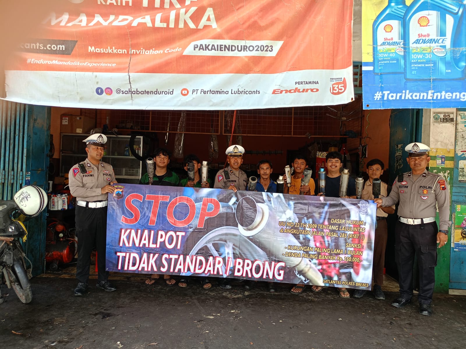 Kapolres Brebes AKBP Guntur Muhammad Tariq melalui Kasat Lantas AKP Rahandy Gusti Pradana mengungkapkan pihaknya akan gencar sosialisasikan larangan penggunaan knalpot sepeda motor yang tidak standar (brong) ke bengkel-bengkel sepeda motor karena melanggar aturan serta suaranya membuat tidak nyaman masyarakat.
