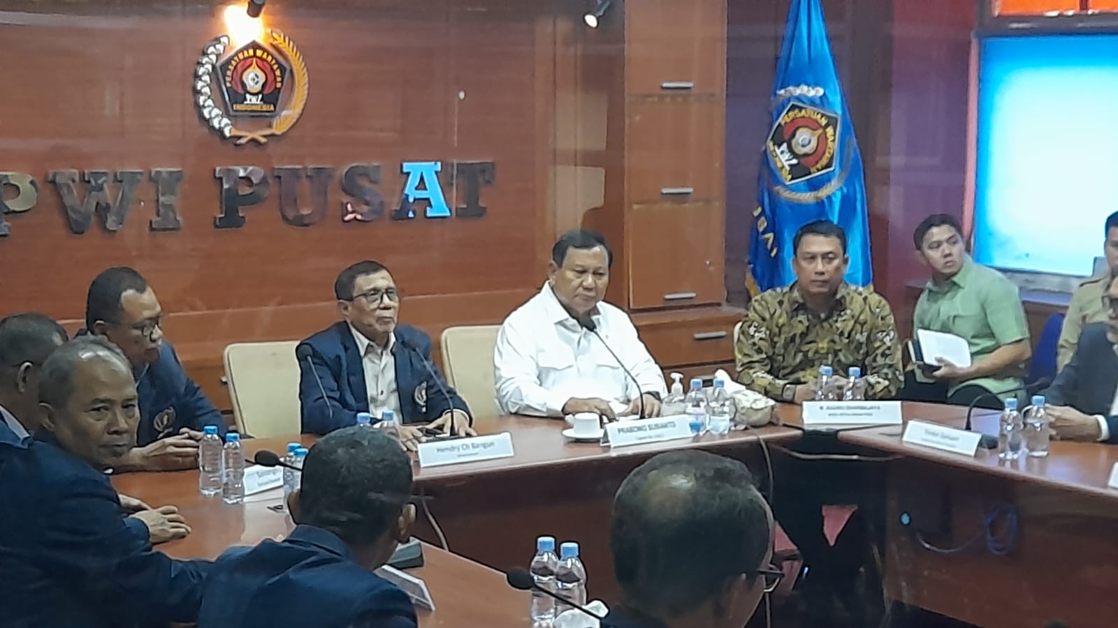 Prabowo Subianto yang datang mengenakan pakaian serba cream ini disambut Ketua Umum PWI Pusat, Hendry Ch Bangun, Sekjen PWI Pusat Sayid Iskandarsyah, Wasekjen Raja Pane dan jajaran pengurus PWI Pusat. Dengan sumingrah Prabowo berjalan menuju ruang pertemuan di Lantai IV Ruang PWI Pusat.
