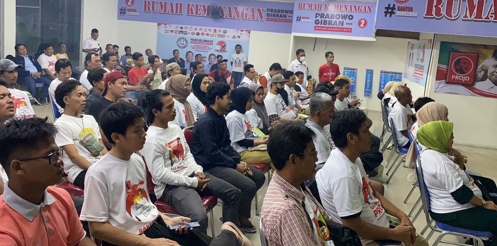 Tim Kemenangan Daerah (TKD) Prabowo-Gibran Banten yang menggelar nobar di Posko Pemenangan Prabowo-Gibran, Ciceri, Kota Serang.