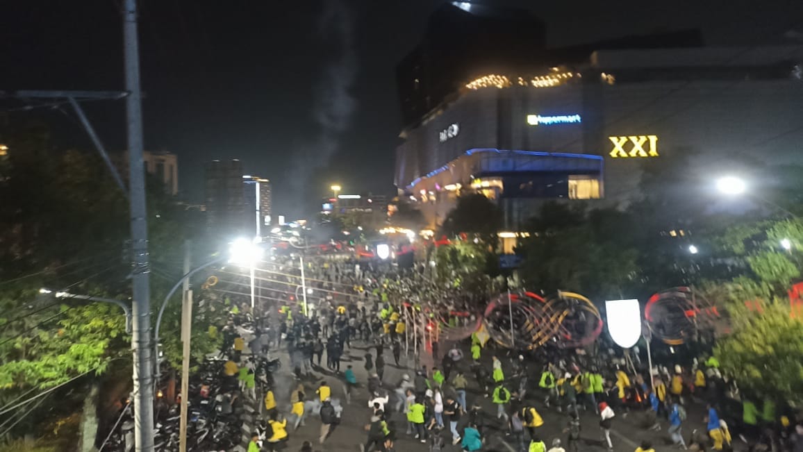 Polisi yang bertugas di lapangan akhirnya terpaksa membubarkan massa dengan menggunakan kendaraan meriam air dan menembakkan gas air mata. Langkah ini diambil untuk mengurai konsentrasi massa yang semakin sulit dikendalikan, terutama setelah terjadinya bentrokan fisik antara mahasiswa dan aparat.