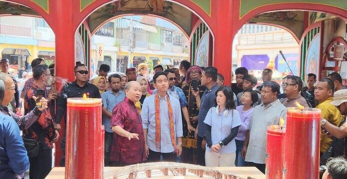 Ketika tiba di vihara, dia pun melihat langsung suasana yang ada di dalam. Pada kunjungan terakhirnya, Gibran mengunjungi cagar budaya Rumah Keluarga Tjhia.