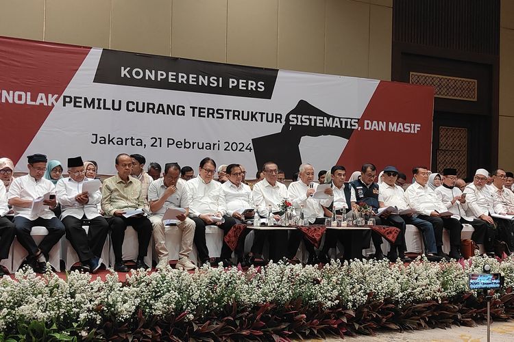 Para tokoh tersebut juga menyuarakan menolak Pilpres 2024. Mereka menilai kontestasi politik itu penuh dengan kecurangan yang terstruktur, sistematis, dan masif (TSM).