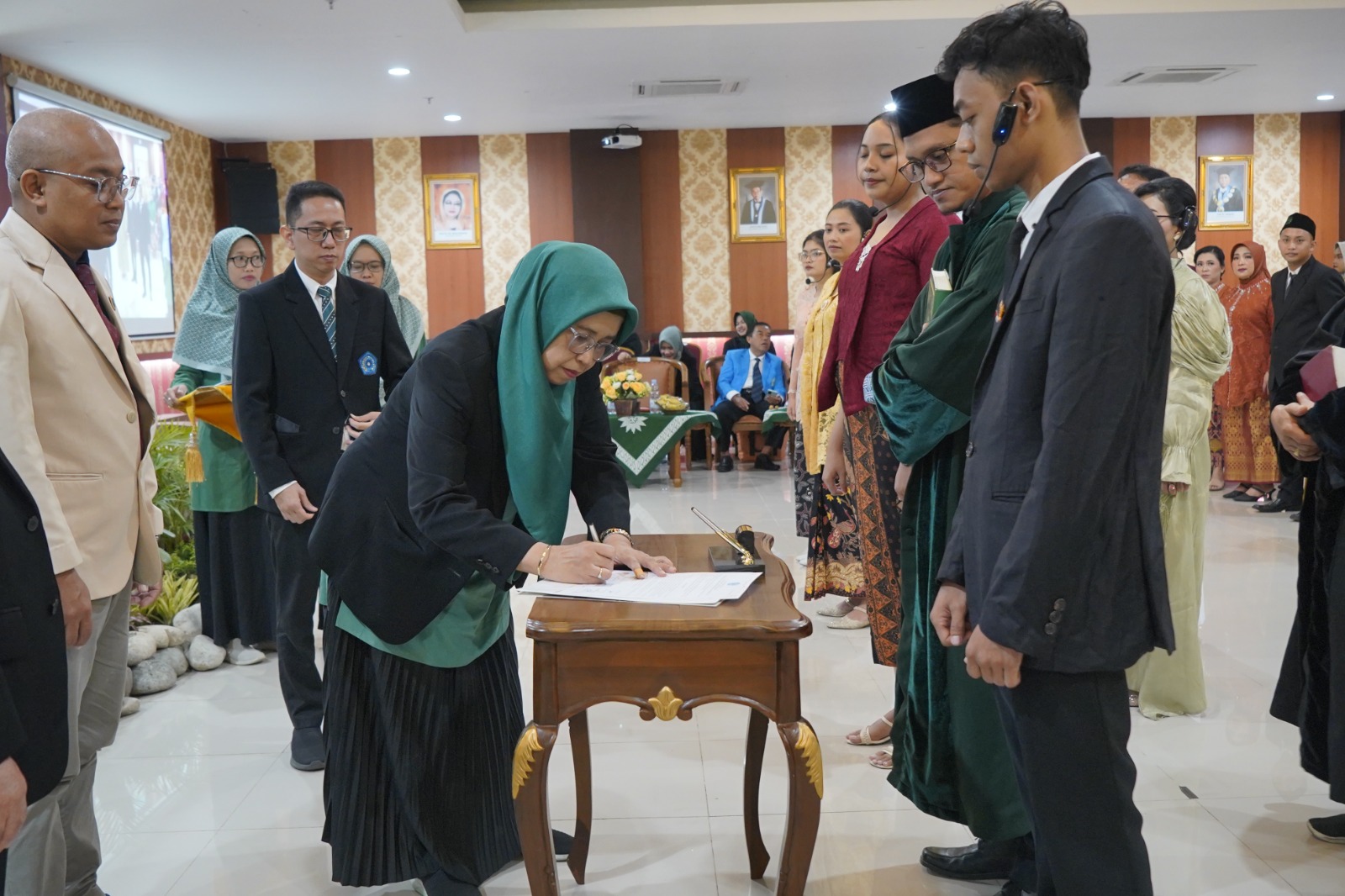 Semarang | Fakultas Ilmu Keperawatan dan Kesehatan (FIKKES) Universitas Muhammadiyah Semarang (Unimus) menggelar sumpah profesi bagi tenaga kesehatan terdiri 162 peserta lulusan Program Studi Pendidikan Profesi Ners berjumlah 61 lulusan, Profesi Pendidikan Bidan berjumlah 34 lulusan, D-4 Teknologi Laboratorium Medis 42 orang, D-3 Teknologi Laboratorium Medis berjumlah 25 orang yang bertempat di Aula Gedung Kuliah Bersama (GKB) II, pada Rabu (29/05/2024).