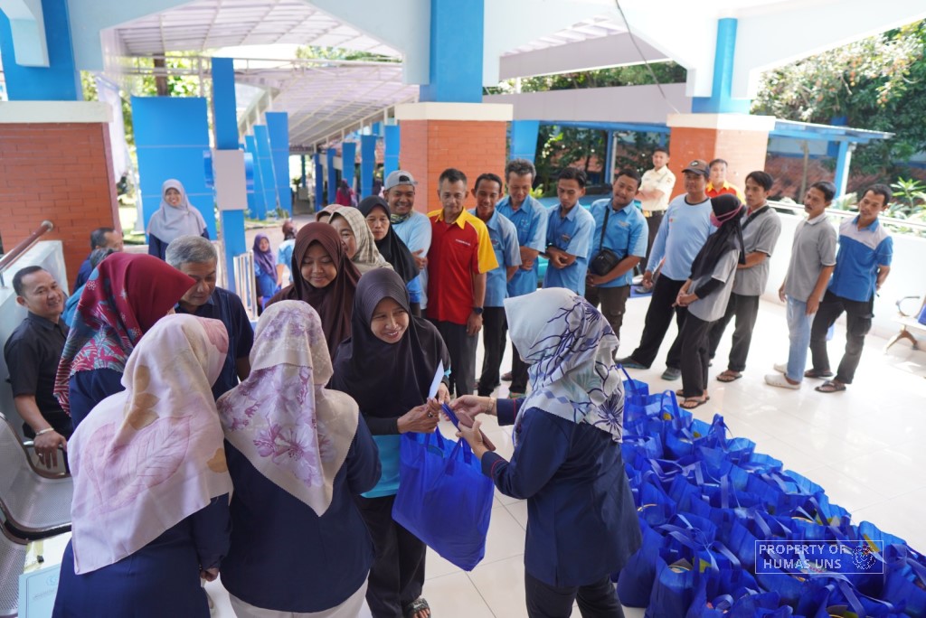 UNS – Bulan Ramadan tahun ini, Fakultas Matematika dan Ilmu Pengetahuan Alam (FMIPA) Universitas Sebelas Maret (UNS) Surakarta kembali berbagi kebahagiaan dengan memberikan paket ramadan. Sebanyak 64 paket dibagikan kepada tenaga kebersihan dan tenaga satuan pengamanan yang ada di lingkungan FMIPA dan Fakultas Teknologi Informasi dan Sains Data (FATISDA). Secara simbolis paket ramadan diberikan oleh Dekan FMIPA kepada salah seorang perwakilan dari tenaga kebersihan pada Rabu (27/3/2024) bertempat di kanopi gedung C FMIPA, disaksikan oleh pimpinan Fakultas dan perwakilan Takmir Masjid.