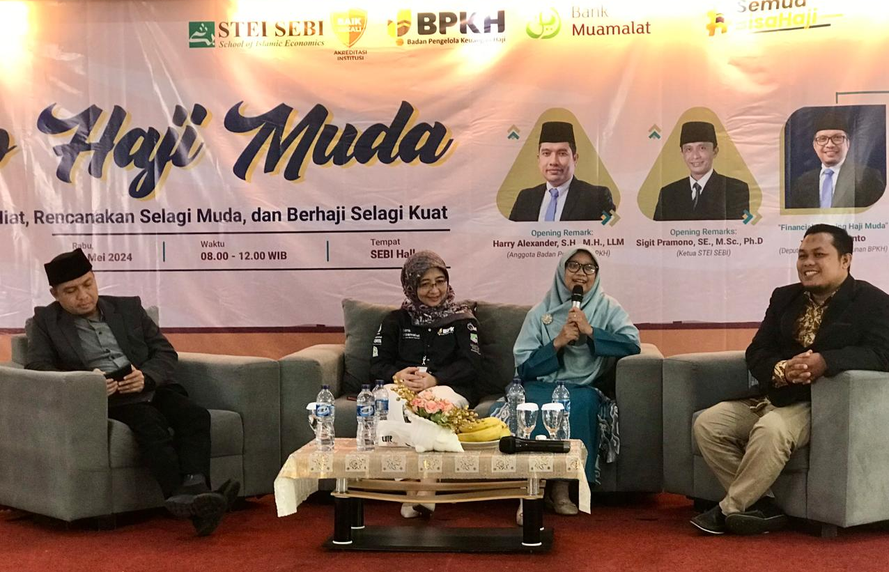 Warga Berita, JAKARTA– STEI SEBI kembali ikut menyukseskan kampanye haji muda. Program sosialisasi ini bekerjasama dengan Badan Penyelenggara Keuangan Haji (BPKH) Republik Indonesia dan Bank Muamalat Indonesia (BMI), di SEBI Hall, kampus STEI SEBI, Rabu (29/5/2024).