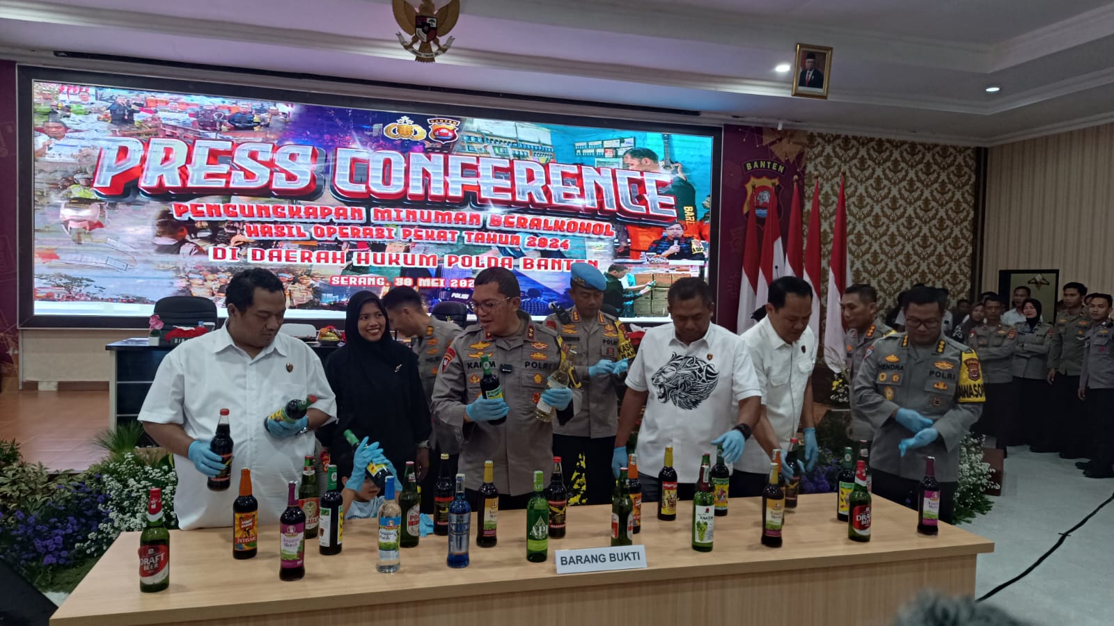 “Polda Banten dan Polres jajaran telah melaksanakan Kegiatan Rutin Yang Ditingkatkan (KRYD) pengungkapan Miras selama bulan April sampai dengan Mei 2024 dan berhasil menyita minuman keras berbagai jenis dan merk sebanyak 75.279 Botol,” katanya saat konferensi pers di Mapolda Banten, Kamis 30 Mei 2024.