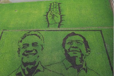 Sementara itu, Ganjar menyampaikan terima kasih kepada komunitas seniman pari corek yang telah kali kedua menggambar wajahnya di persawahan Lodji Londo. Sebelumnya, wajah Ganjar juga pernah digambar dengan seni pari corek saat masih menjabat gubernur.