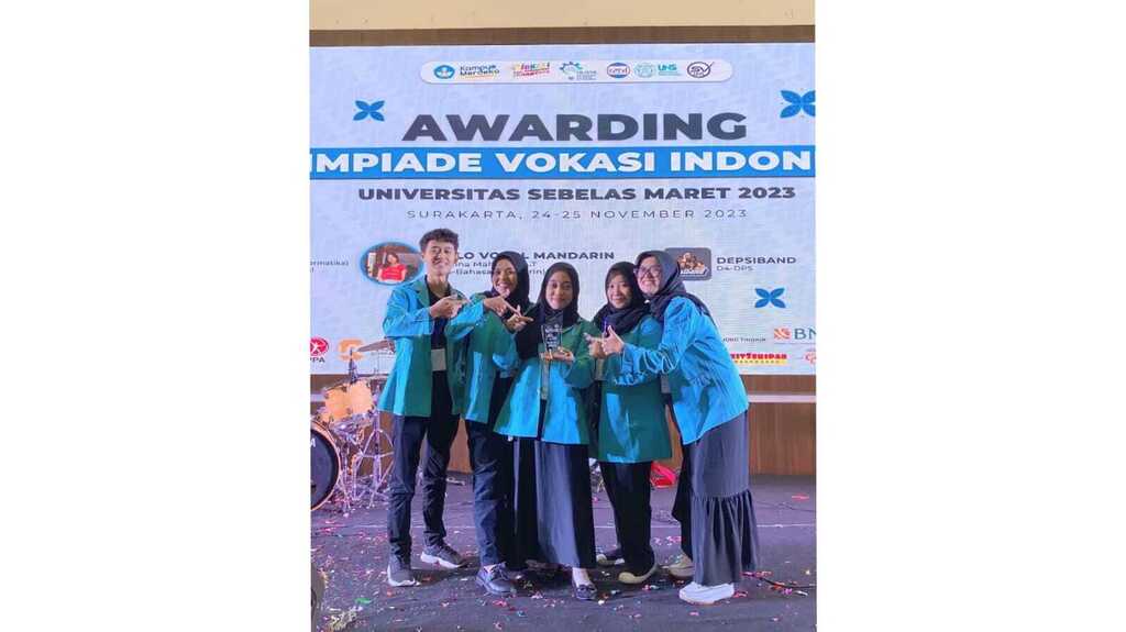 UNS — Lima mahasiswa Program Studi (Prodi) D-3 Komunikasi Terapan Sekolah Vokasi (SV). Universitas Sebelas Maret (UNS) Surakarta angkatan tahun 2021 meraih Juara 1 Lomba Documentary Feature Video pada Olimpiade Vokasi Indonesia (OLIVIA) 2023. Mereka adalah Prabanasta Zalevi Nuraini, Salfia Andriyani, Wahyu Lusi Lestari, Yhuana Fhara Angreani dan Burhanudin Muhammad Ikhwan.