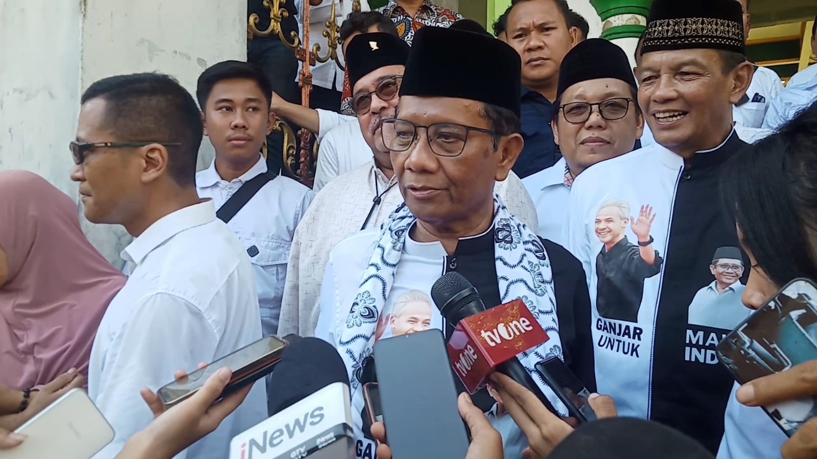 Mahfud MD menyampaikan Abuya Muhtadi menyatakan umat berhak memilih siapapun, akan tetapi Abuya Muhtadi hanya bersama dengan Ganjar Pranowo dan Mahfud MD.