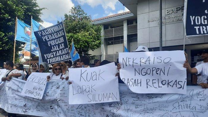 Karena itulah, puluhan PKL Teras Malioboro 2 yang tergabung dalam Paguyuban Tridharma berunjuk rasa di Kantor Gubernur DIY, Kompleks Kepatihan, Kamis (14/12/2023).