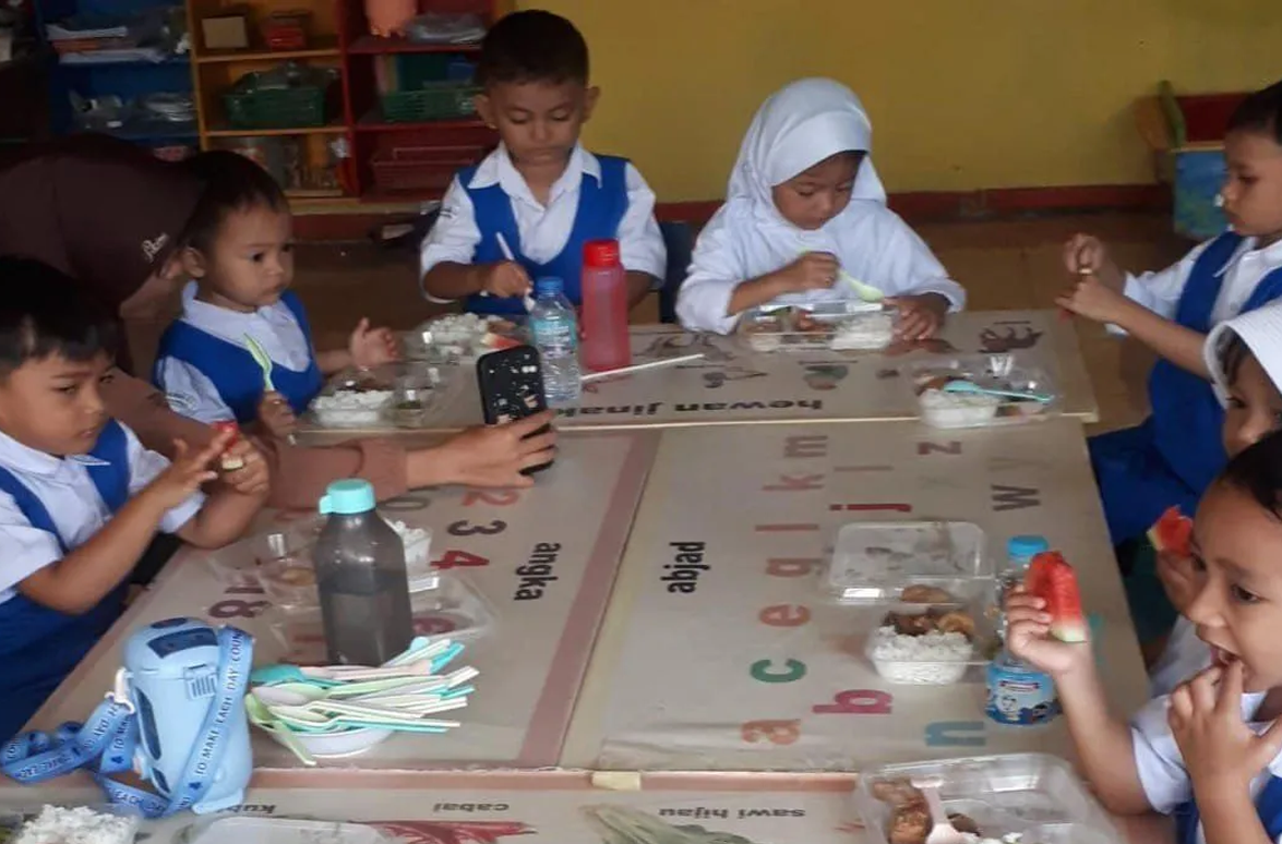 Program MBG ini dilaksanakan setiap hari Senin hingga Jumat pada pukul 09.00 WIB. Para siswa PAUD diberikan kesempatan untuk makan bersama di sekolah, sekaligus membiasakan mereka dengan pola konsumsi makanan sehat sejak usia dini.