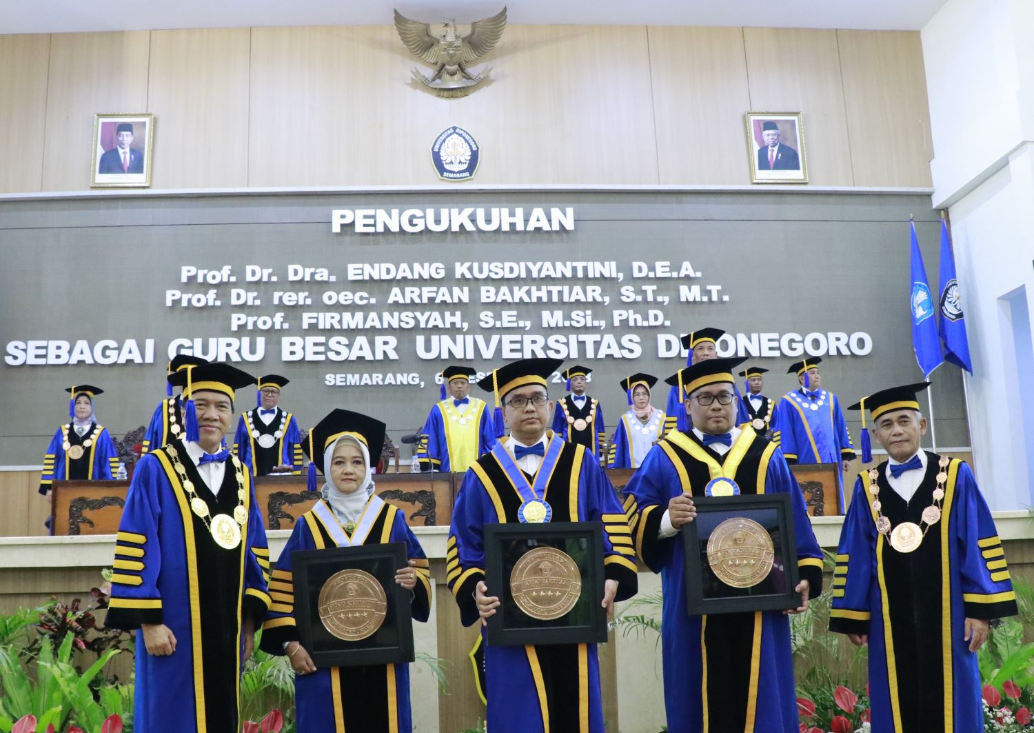 Undip kembali mengukuhkan tiga guru besar pada Rabu, 6 Desember 2023 di Gedung Prof. Soedarto, S.H., Tembalang pada Upacara Pengukuhan sebagai Guru Besar Universitas Diponegoro. Para dosen yang dikukuhkan sebagai guru besar yaitu guru besar pakar Biologi Prof. Dr. Dra. Endang Kusdiyantini, D.E.A. (Fakultas Sains dan Matematika), guru besar pakar Teknik Industri Prof. Dr. rer. oec. Arfan Bakhtiar, S.T., M.T. (Fakultas Teknik), dan guru besar Pakar Ekonomi Prof. Firmansyah, S.E., M.Si., Ph.D. (Fakultas Ekonomika dan Bisnis).