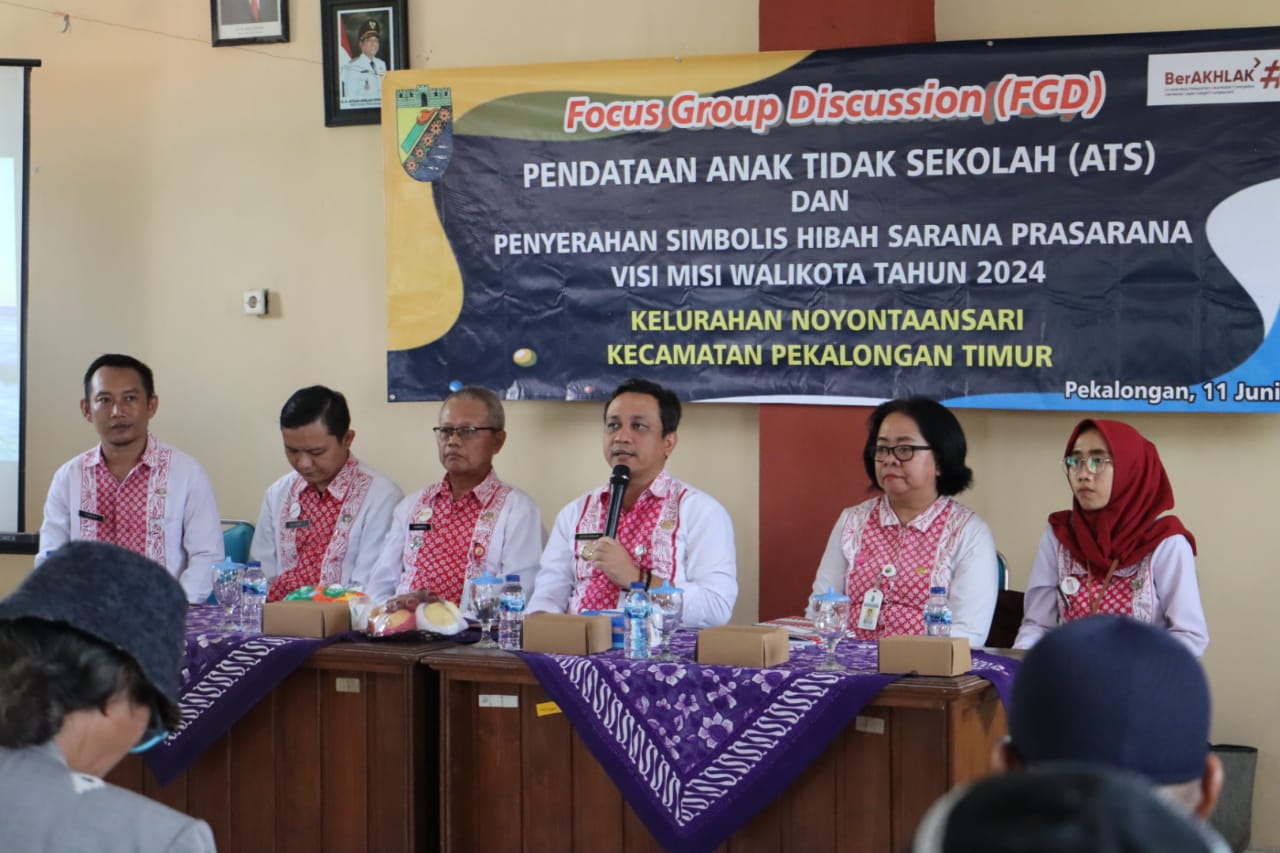 Kota Pekalongan- Warga Berita- Upaya menekan jumlah anak yang tidak bersekolah (ATS) terus menjadi prioritas utama Pemerintah Kota Pekalongan, salah satunya dengan melaksanakan Focus Group Discussion (FGD) seperti yang dilakukan oleh Kelurahan Noyontaansari. Sejumlah instansi terkait seperti Dinas Pendidikan (Dindik), Dinas Pemberdayaan Masyarakat, Perempuan dan Perlindungan Anak (DPMPPA), Dinas Sosial, Pengendalian Penduduk dan Keluarga Berencana (Dinsos-P2KB), tokoh masyarakat dan beberapa ATS.