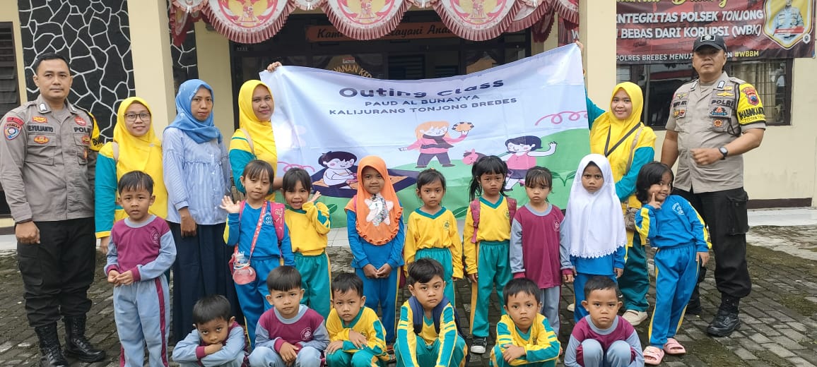 Brebes – Polsek Tonjong Polres Brebes Polda Jateng menerima Kunjungan Anak- anak dari Paud Kelompok Bermain (KB) ” AL BUNAYA” Desa Kalijurang kec. Tonjong Kab. Brebes. Kamis(13/05/2024)