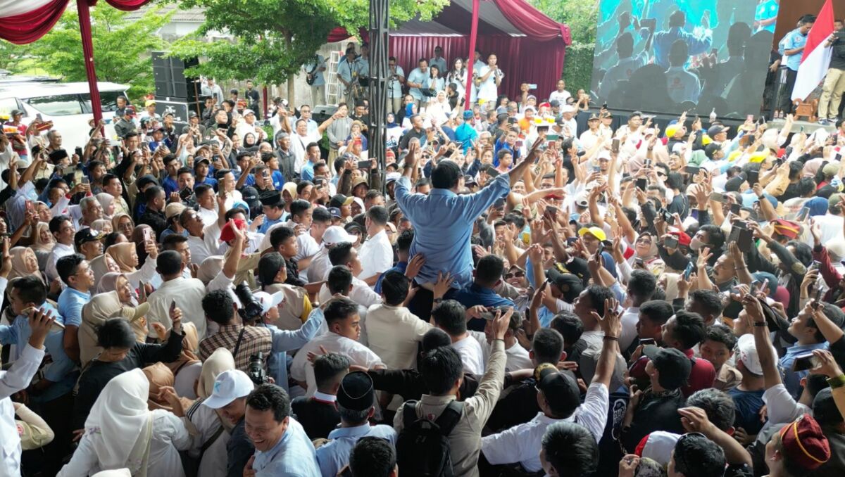 Seketika, Prabowo diboyong untuk digendong turun panggung oleh para pendukung yang menggemakan ‘Jabar Tetap Prabowo.’