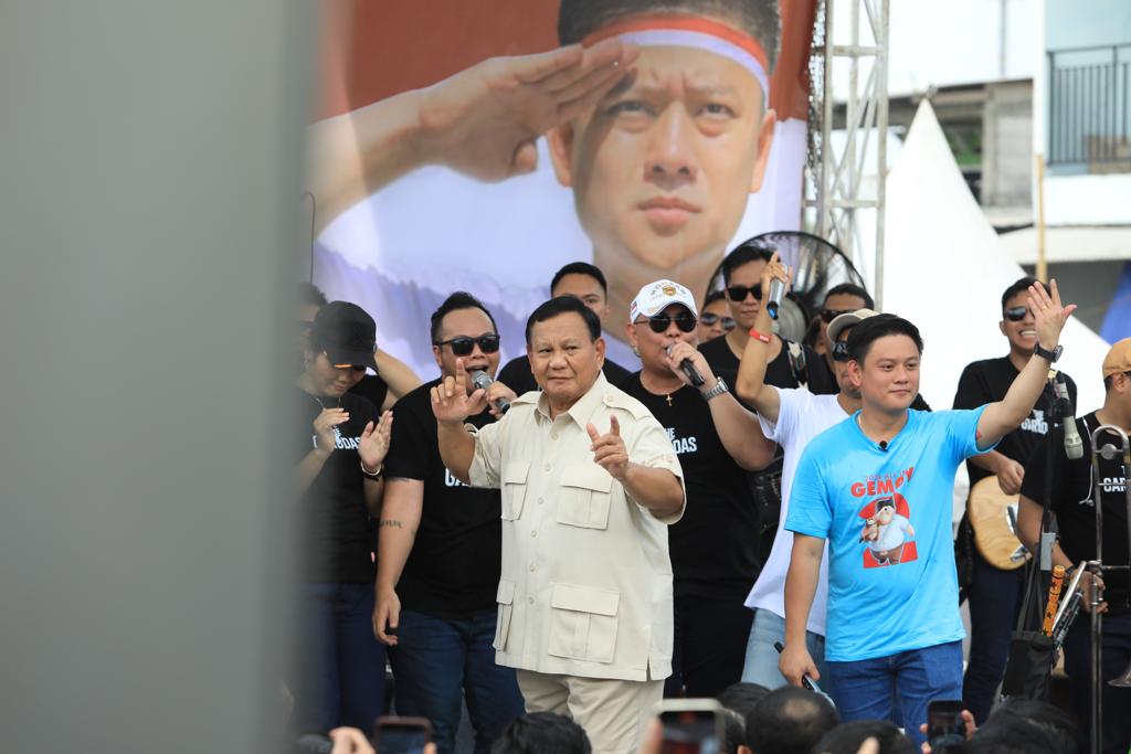 Dalam momen itu, Prabowo sempat menggiling Opor Ayam di atas Kuali besar yang tepat berada di bawah panggung.