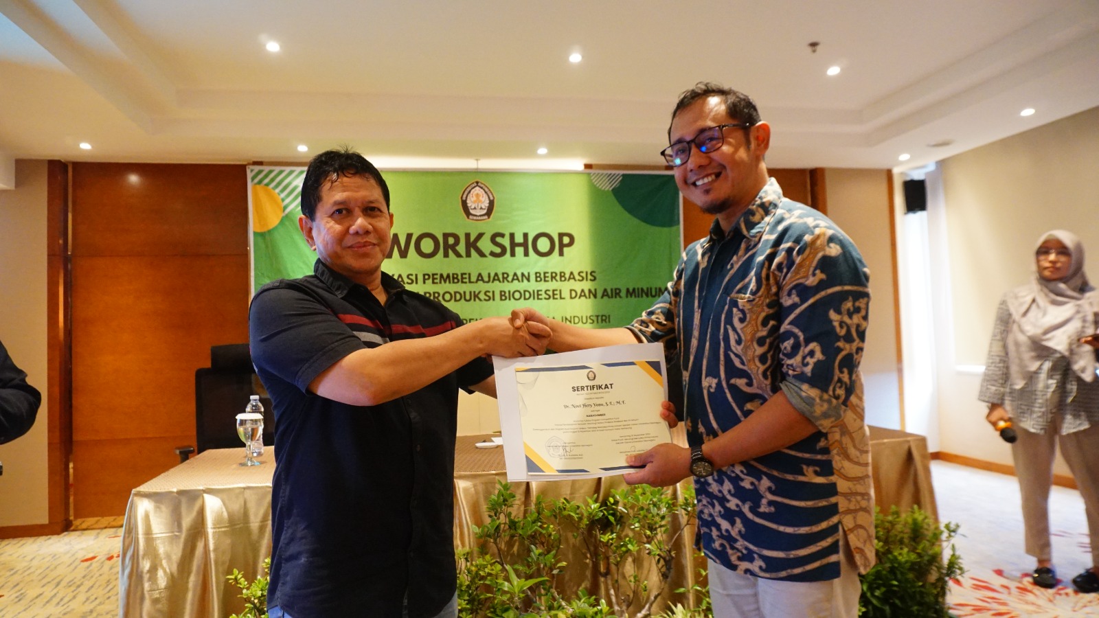 Hadir sebagai narasumber Workshop Inovasi Pembelajaran Berbasis Teaching Factory Produksi Biodiesel dan Air Minum yaitu Dr. Novi Hery Yono, S.T., M.T., dari PPSDM MIGAS dan Novita Harpan, S.T. dari Asia Pacific Sourcing Manager FMC Indonesian (PT. Bina Guna Kimia) yang telah menyampaikan berbagi tips dan trik dalam pembelajaran dan pengelolaan bisnis berbasis Teaching Factory bagi para dosen dan tenaga pendidik di TRKI, Sekolah Vokasi, Undip. Nara sumber menyampaikan aspek utama dalam pembelajaran berbasis Teaching Factory seperti: landasan program, desain program, monitoring dan evaluasi program serta indikator keberhasilan.