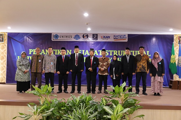 SEMARANG | Jumat (07/06/2024) Rektor Universitas Muhammadiyah Semarang (Unimus) Prof. Dr. Masrukhi, M.Pd. didampingi Ketua Badan Pembina Harian (Heru Isnawan M.M.) dan disaksikan oleh para wakil rektor serta Pimpinan pejabat di lingkungan Unimus, lantik 4 Dekan masa jabatan 2024-2028. Dekan yang dilantik secara langsung oleh Rektor telah melalui serangkaian tes dan seleksi pada tingkat Fakultas.