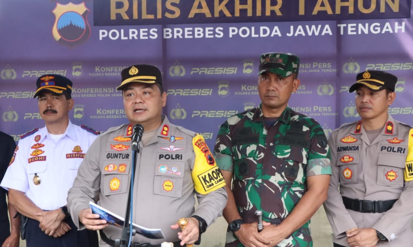 Brebes – Polres Brebes Polda Jawa Tengah menggelar konferensi Pers capaian hasil kinerja yang dilaksanakan oleh jajaranya. Hal tersebut disampaikan langsung oleh Kapolres Brebes AKBP Guntur Muhammad Tariq usai pelaksanaan apel kesiapan pengamanan malam tahun baru 2024, Minggu (31/12/2023) sore kemarin yang digelar dihalaman Mapolres Brebes.