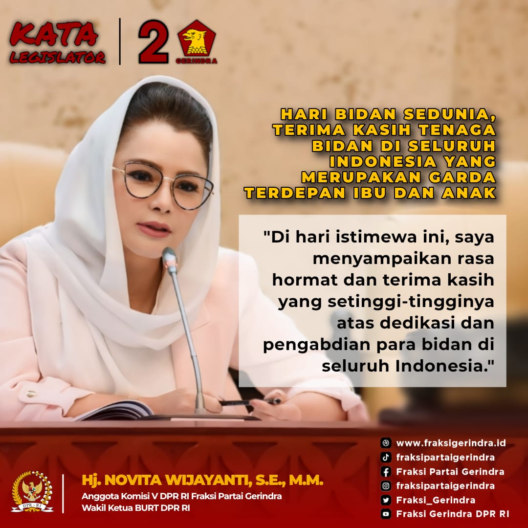 Warga Berita, Jakarta – Anggota DPR RI dari Fraksi Partai Gerindra Novita Wijayanti menyampaikan rasa hormat dan terima kasih kepada seluruh tenaga bidan di Indonesia.