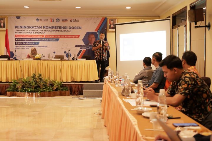 Salatiga – Guna meningkatkan kompetensi dosen terkait inovasi pembelajaran berbasis profil lulusan, program studi S1 Informatika Fakultas Teknik dan Ilmu Komputer (FTIK) Universitas Muhammadiyah Semarang (UNIMUS) menggelar Lokakarya Pembuatan Inovasi Pembelajaran, pada Jumat-Sabtu (31 Mei-01 Juni 2024). Bertempat di Hotel Laras Asri Resort Salatiga, acara diikuti oleh dosen dilingkungan FTIK dan Sastra Inggris UNIMUS serta Rumah Sakit Pendidikan UNIMUS dan PT Telkom sebagai mitra. Acara menghadirkan Dr. Erwin Budi Setiawan, S.Si., MT dari Telkom University dan dimoderatori oleh Rima Dias Ramadhani, S.Kom.,M.Kom (Dosen Informatika UNIMUS).