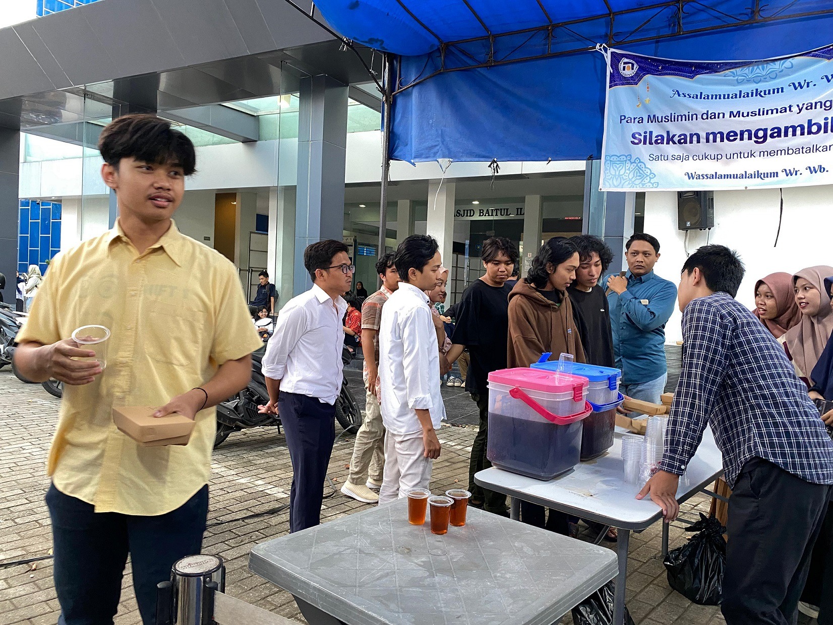 Mahasiswa pun sangat terbantu dengan adanya takjil yang disediakan oleh PAM Udinus. Dengan menu yang bervariasi setiap harinya, secara tidak langsung mahasiswa sangat menanti-nanti adanya takjil di setiap sore hari. Takjil pun mulai dibagikan pada hari Senin-Sabtu pukul 17.00 WIB sampai persediaan habis. (Humas Udinus/Haris. Foto: Humas Udinus)