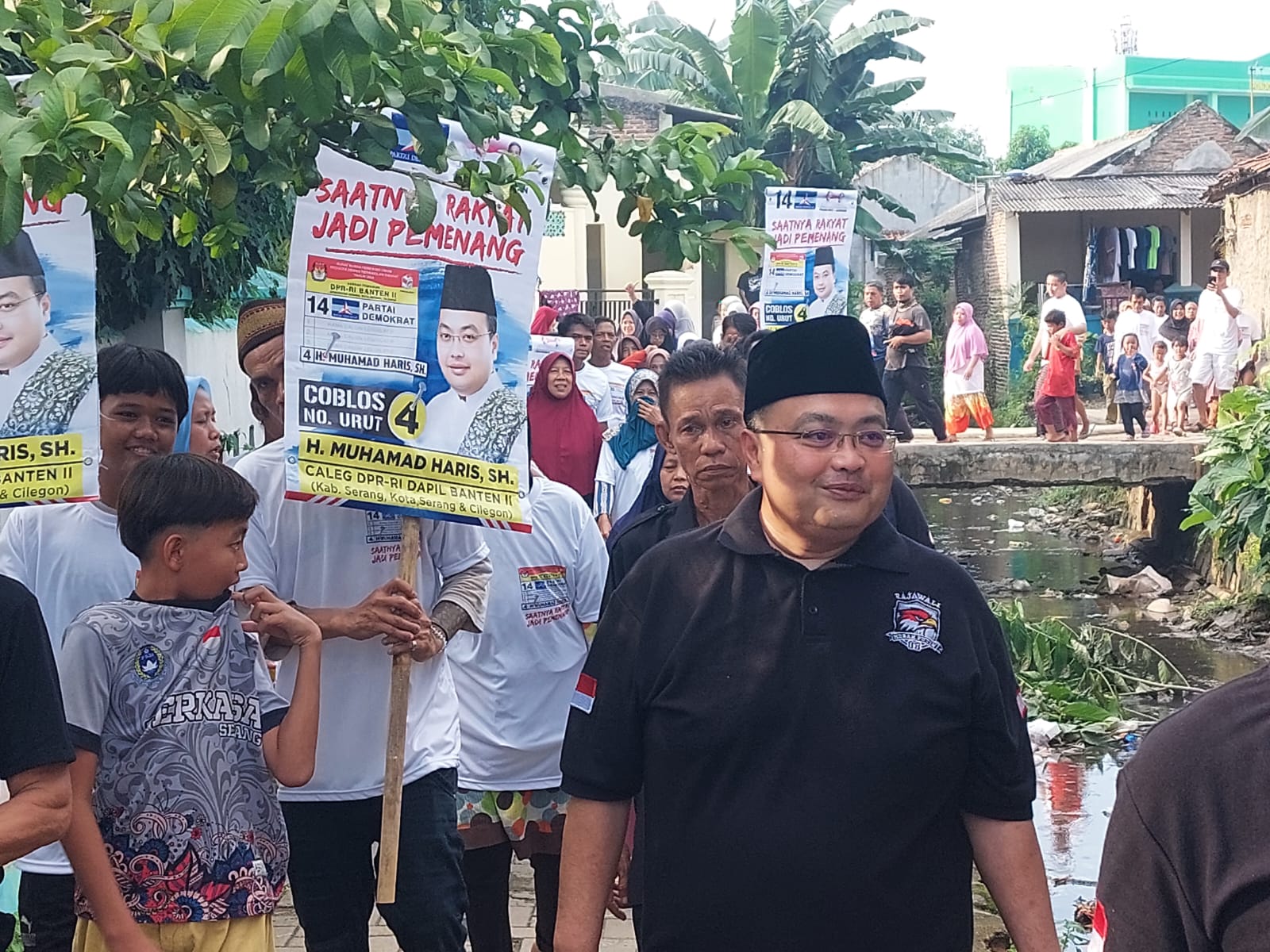 Haris dan ratusan simpatisan serta relawan berkeliling kampung Sempu Kelapa Endep, Kelurahan Cipare, Kecamatan Serang, Kota Serang pada Selasa, 30 Januari 2024.