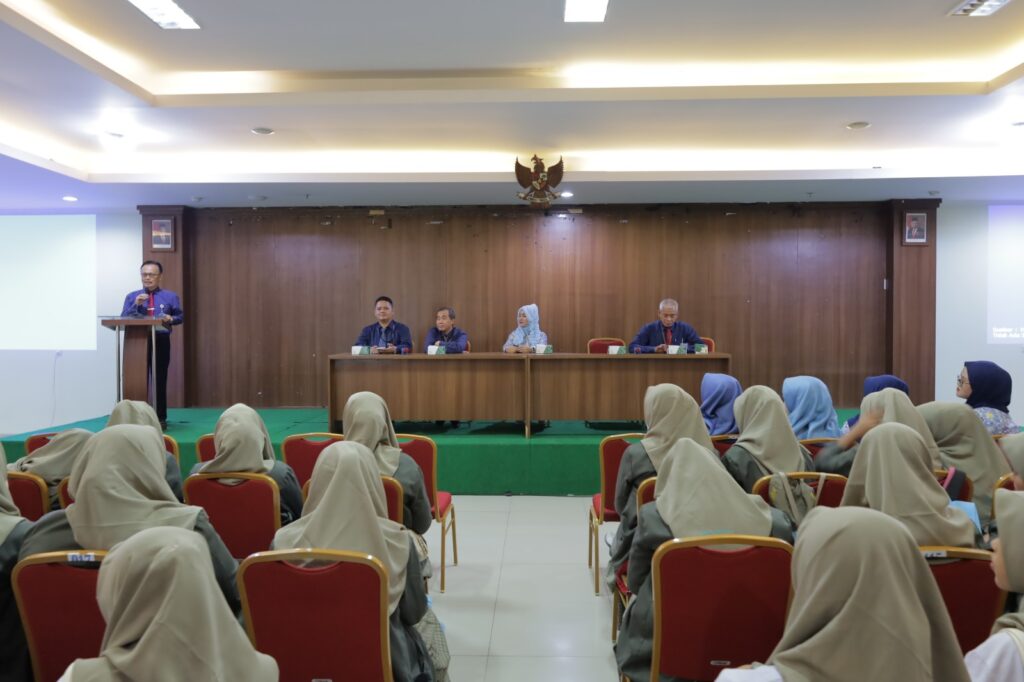 Semarang | Universitas Muhammadiyah Semarang (Unimus) terima kunjungan industri dari SMK Kesehatan Prof. Dr. Moestopo Bogor, Senin (12/5/2024) bertempat di Aula GKb 1 lantai 7. Kunjungan diterima oleh Wakil Rektor 4 (Muhammad Yisif, Ph.D), Dekan FKM (Dr. Sayono, SKM., Mkes.), Dekan FIKKES (Dr. Ali Rosidi, M.Kes) beserta Wakil Dekan 1 (Dr. Ns. Fatkhul Mubin), kepala UPT Admisi dan Marketing (Iswayudi Joko, M.Pd.). Sementara Rombongan dri SMK Kesehatan Prof. Dr. Moestopo terdiri dari Kepala Sekolah (Fransisca Agustina, SE., MM), Guru Pembimbing serta 112 Siswa peserta Kunjungan yang berasa dari jurusan Teknologi Laboratorium Medis dan Farmasi.