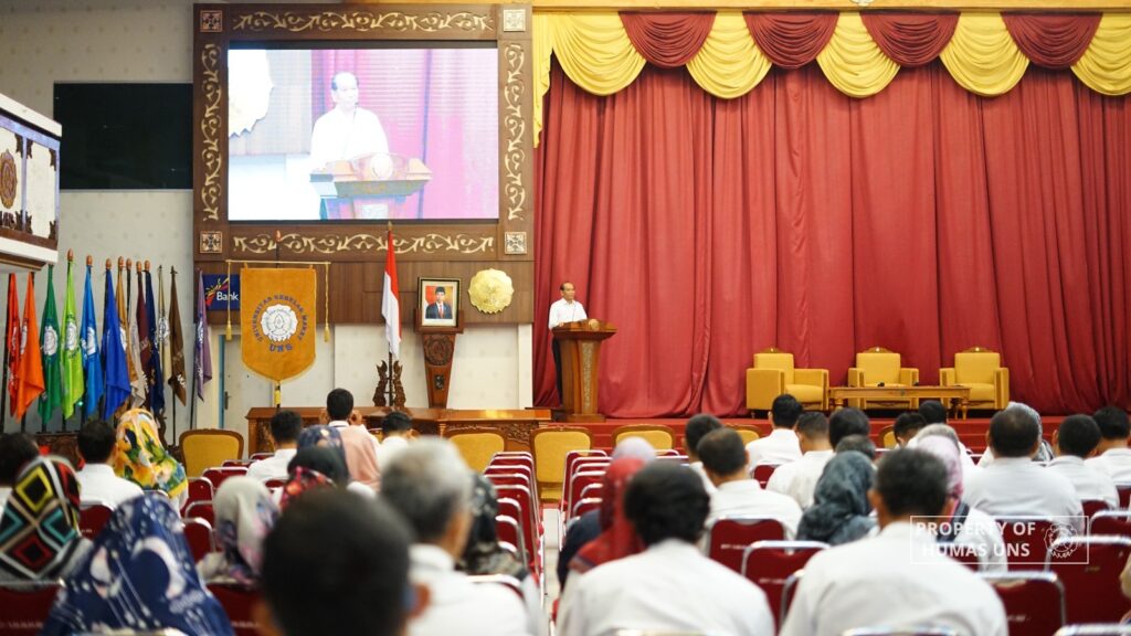 UNS— Universitas Sebelas Maret (UNS) Surakarta melakukan sosialisasi Kuliah Kerja Nyata (KKN) Merdeka Belajar Kampus Merdeka (MBKM) UNS Membangun Desa periode Juli-Agustus tahun 2024. Sosialisasi dilakukan secara luring dan daring di Auditorium G.P.H. Haryo Mataram UNS, Senin (13/5/2024).