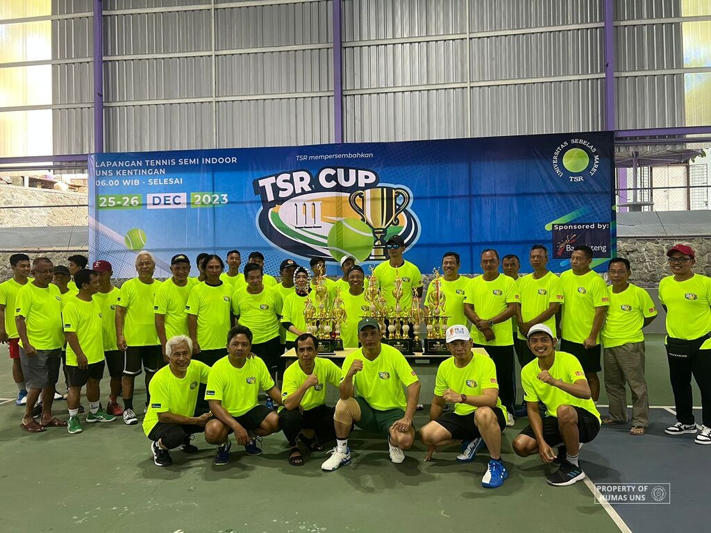 UNS — Universitas Sebelas Maret (UNS) Surakarta kembali menggelar Turnamen Tenis bertajuk Tenis Sahabat Rektor Cup (TSR Cup) III. Kegiatan TSR Cup III diselenggarakan di Lapangan Tenis Semi Indoor FKIP UNS Kentingan yang berlangsung selama 2 hari yaitu Senin (25/12/2023) dan Selasa (26/12/2023).