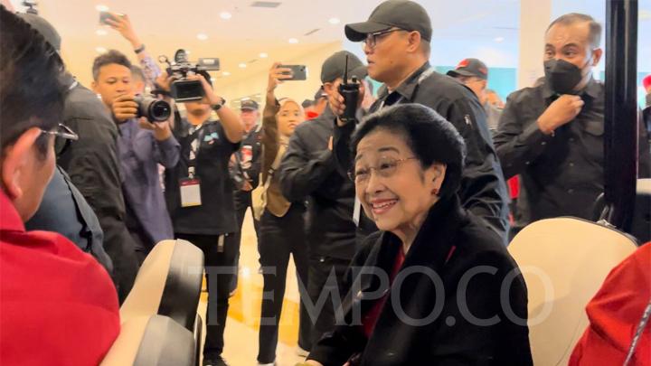 Ketua Umum PDI Perjuangan, Megawati Soekarnoputri tiba di arena Rapat Kerja Nasional (Rakernas) V di Beach City International Stadium Ancol, Jakarta Utara, Jumat (24/5/2024) | tempo.co