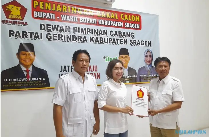 Dalam kesempatan itu, Joko yang juga Ketua Badan Pemenangan Pemilu (Bapilu) DPC Partai Gerindra Sragen, menyampaikan Gerindra buka pendaftaran bakal cabup dan bakal calon wakil bupati (cawabup) pada Rabu (22/5/2024). Joko menyampaikan ke Wina sudah ada dua tokoh yang mengambil formulir yaitu mantan Sekretaris Daerah (Sekda) Tatag Prabawanto dan struktural DPC Gerindra Sragen Mulyono.