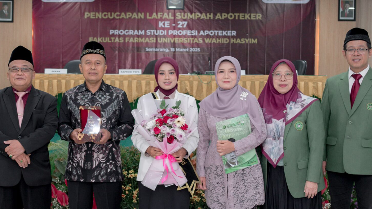 Universitas Wahid Hasyim (Unwahas) Semarang kembali menggelar prosesi pengambilan sumpah untuk calon apoteker Program Studi Profesi Apoteker (PSPA) tahun 2024-2025 pada Sabtu (15/03). Acara yang digelar di aula gedung Fakultas Farmasi ini berlangsung khidmat dan dihadiri oleh sejumlah pejabat penting, termasuk Ketua Yayasan Wahid Hasyim Semarang Prof. Abu Hapsin, Rektor Unwahas Prof. Mudzakkir Ali, serta perwakilan dari Ikatan Apoteker Indonesia (IAI) Jawa Tengah dan Dinas Kesehatan Provinsi Jawa Tengah.
