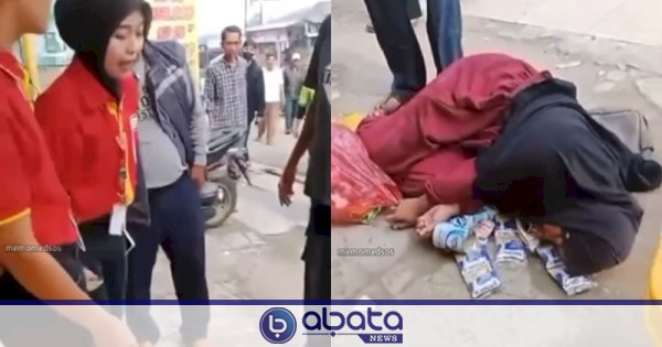 Ibu tersebut tampak tergeletak di halaman parkiran minimarket dengan kondisi sejumlah barang seperti susu kaleng dan sachet berceceran. Dia ketahuan oleh pegawai minimarket mencuri beberapa barang yang dimasukan ke dalam tasnya.